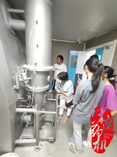 在昆明衛(wèi)生職業(yè)學院的實訓室,新購置的FL-5型流化床制粒機在技術(shù)人員的調(diào)試下,開始運行。